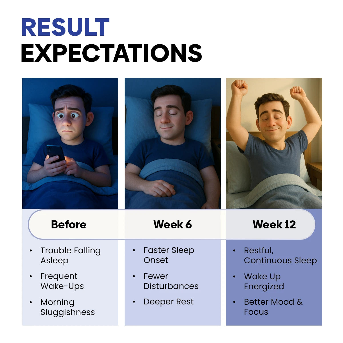 Many users notice a calming effect and easier sleep onset within the first few nights. For consistent, deep, and restorative sleep, use daily for 1–2 weeks.