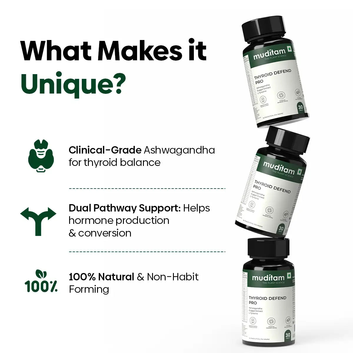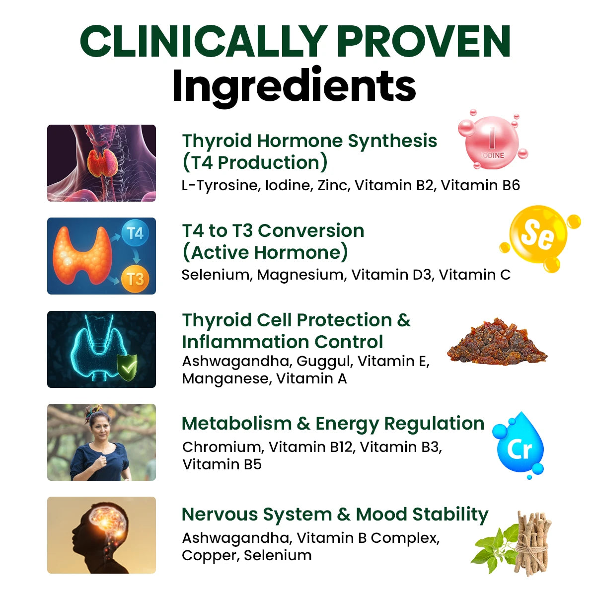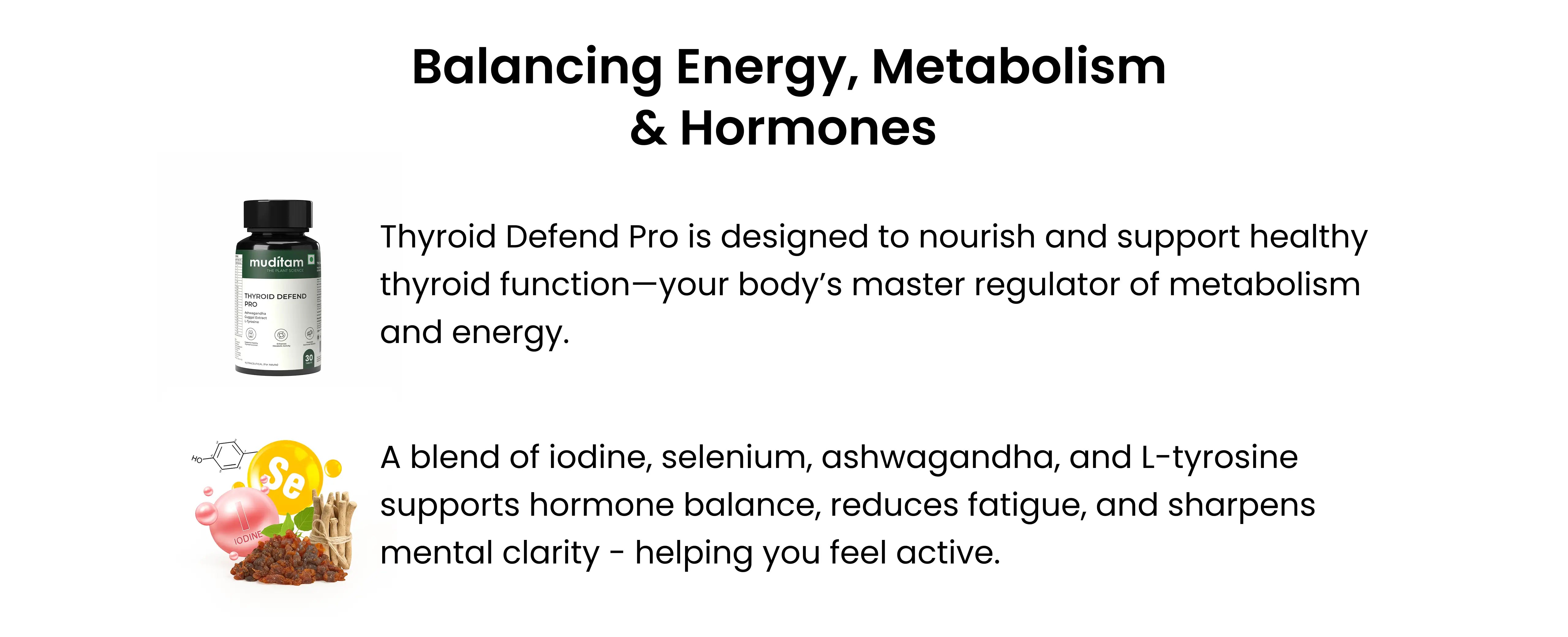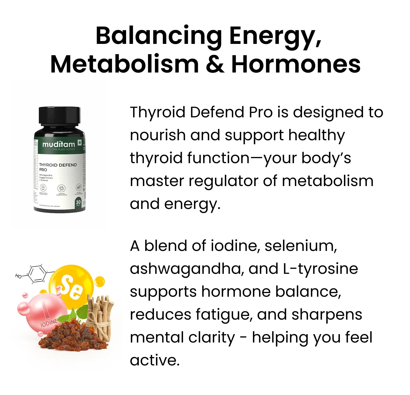 It combines clinically studied herbs and nutrients - like Selenium, Iodine, Ashwagandha, and Guggul - to support thyroid hormone balance, metabolism, and overall energy.
